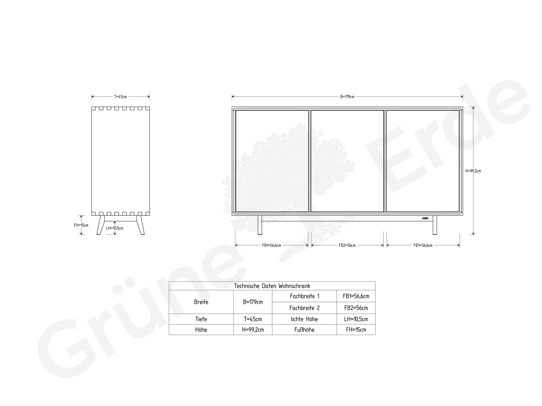 - Die Schrankrückwände bestehen aus leichtem, verwindungsfestem Schichtholz