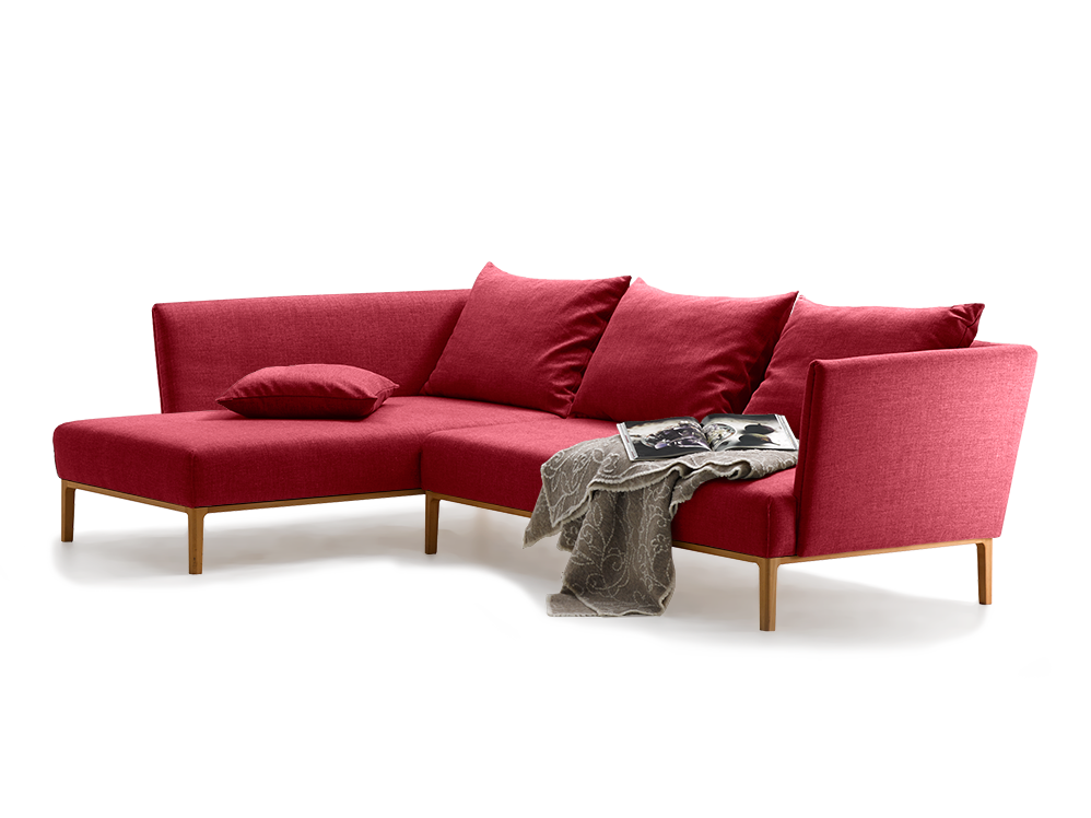 • Lorea Ecksofa 222,5 x 315 cm, Buche, mit Bezug Wollstoff Tartini Klatschmohn