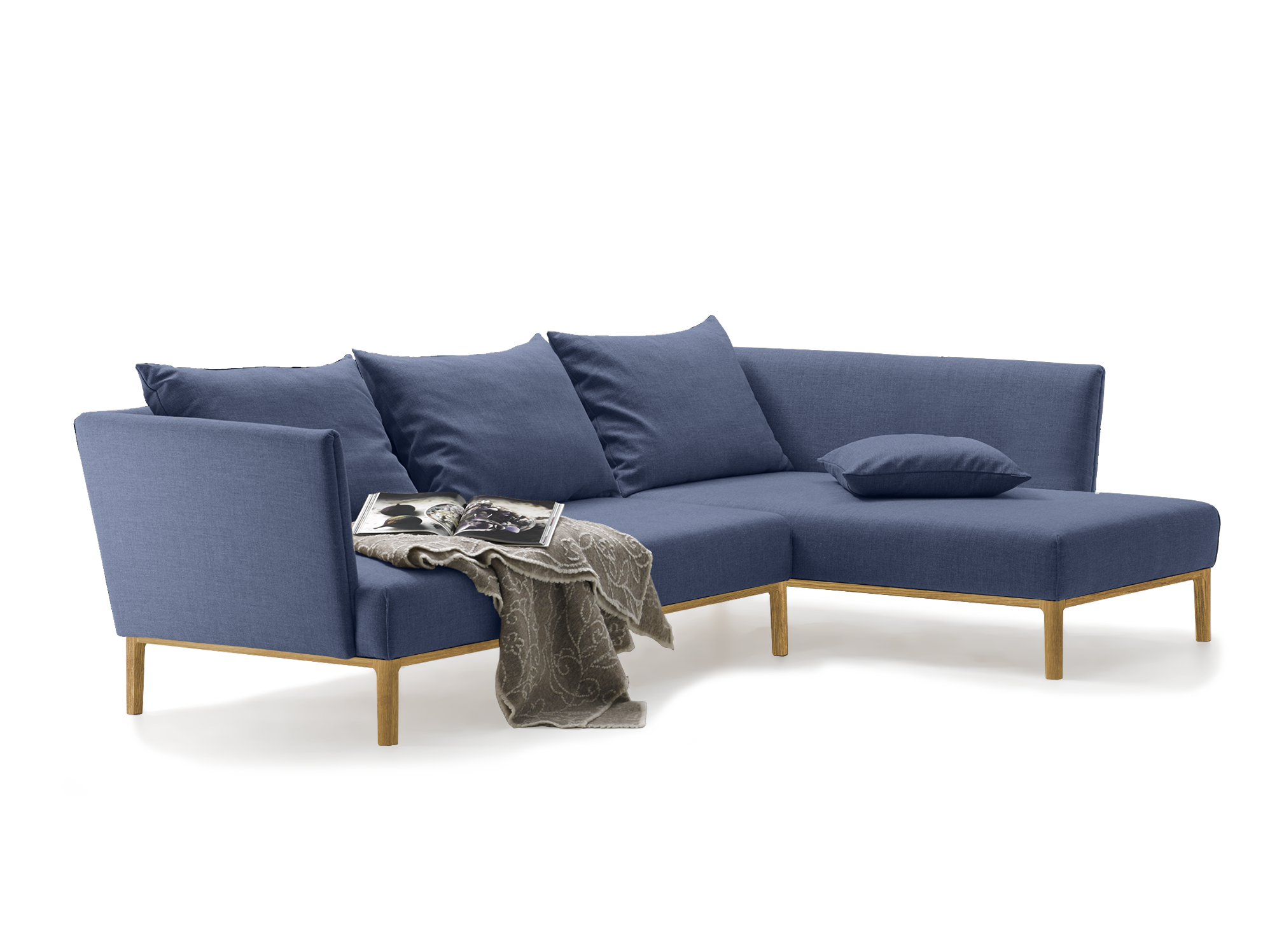 Lorea Ecksofa 265 x 222,5 cm, Eiche, mit Bezug Wollstoff Tartini Indigo