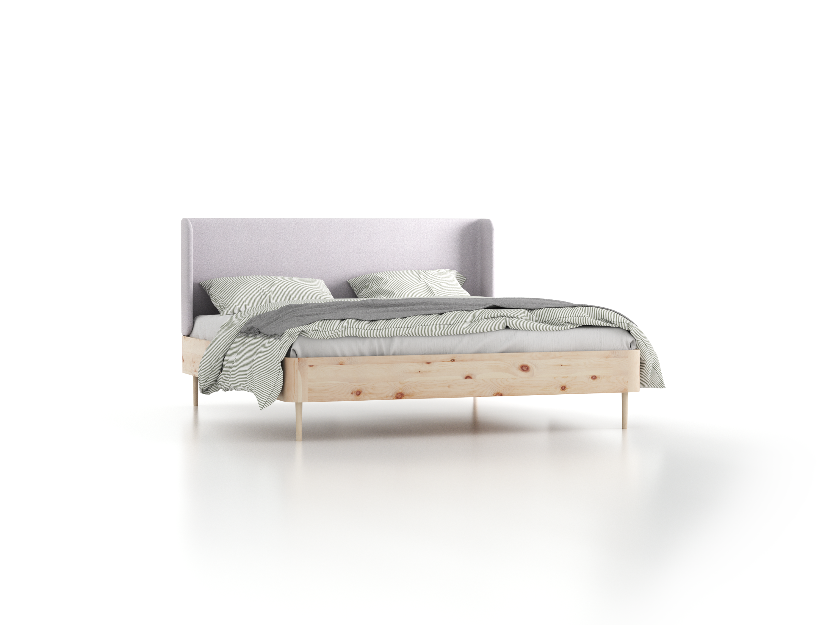 Bett Tonda mit Polsterbetthaupt, Zirbe, Möbelstoff Tano Natur