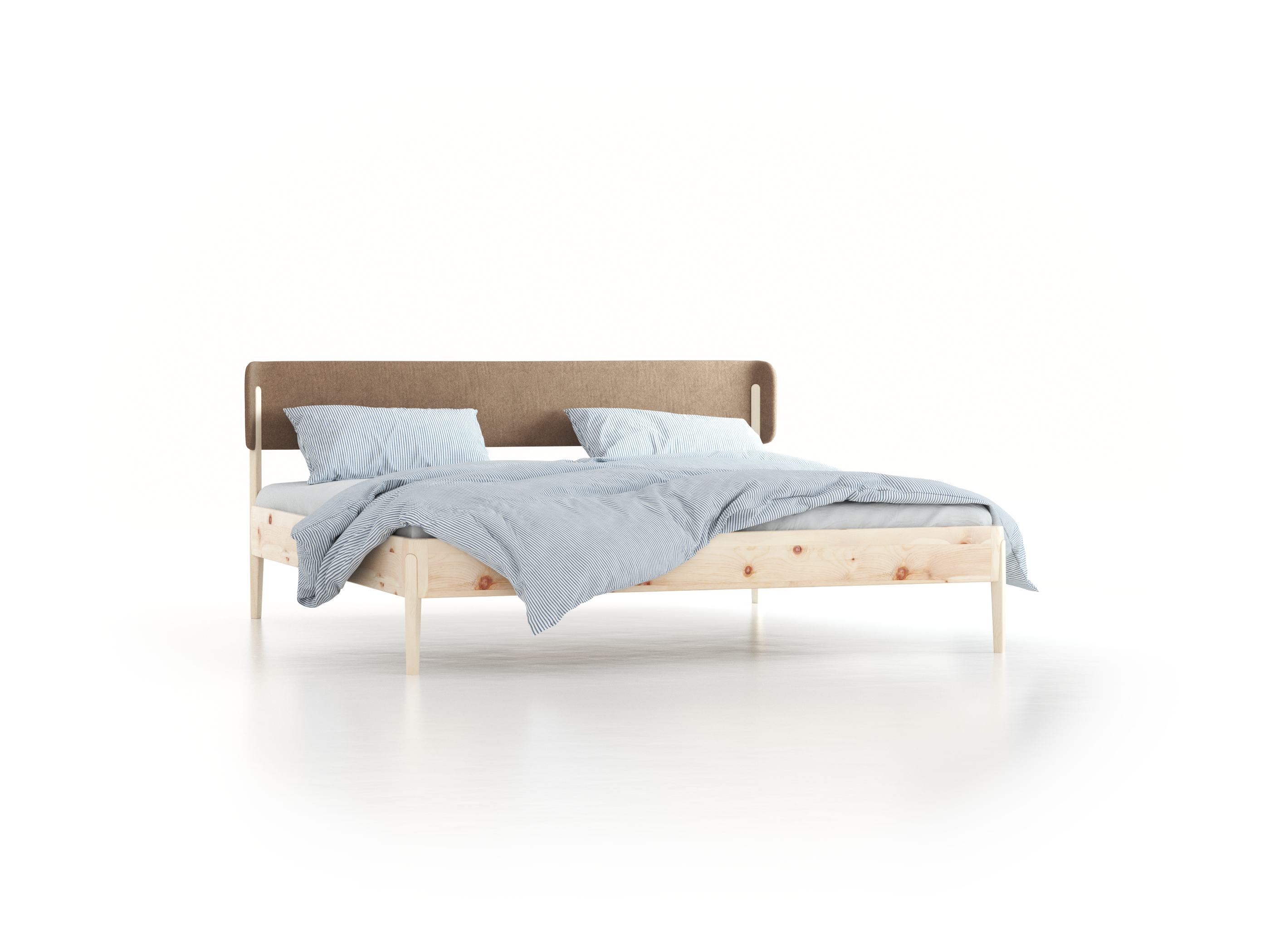 Bett Alwy mit Polsterbetthaupt, 200 x 200 cm, Wollstoff Stavang Haselnuss (65), Zirbe