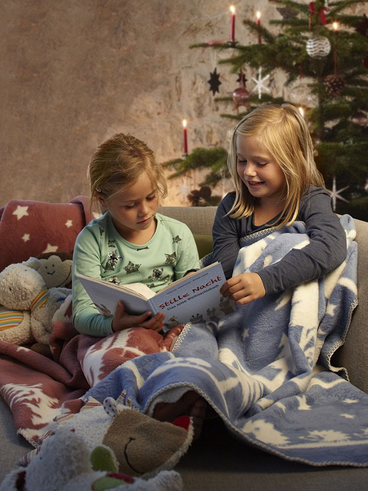 Kuschelig warme und flauschige Wohndecke für Kinder aus 100% Baumwolle. Gewebtes Motiv in Jacquard-Bindung, Rückseite gegengleiche Farbstellung.