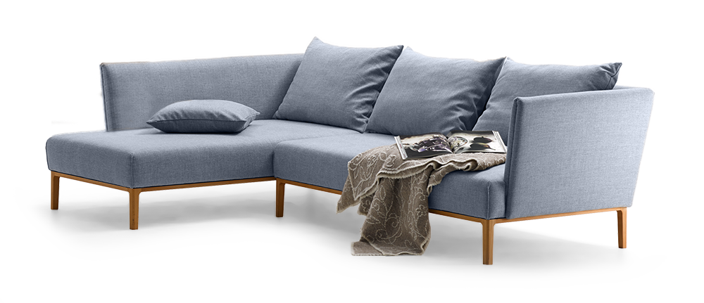 • Lorea Ecksofa 222,5 x 265 cm, Buche, mit Bezug Wollstoff Tartini Taubenblau