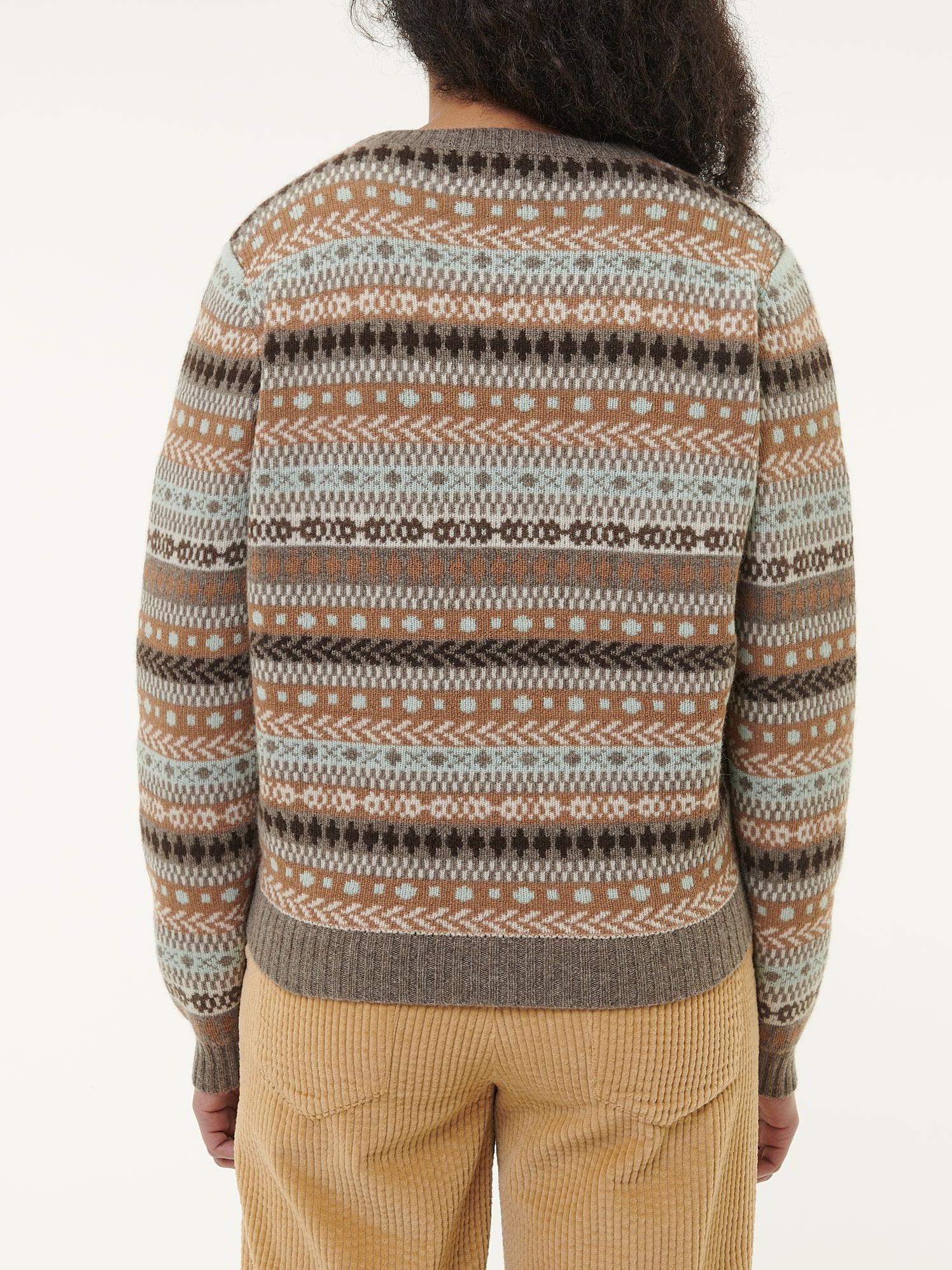 Nordische Geborgenheit aus 100 % NaturEdle Yakwolle, wertvolles Kamelhaar und wärmende Schurwolle werden kombiniert und es entsteht ein anschmiegsam-weicher Begleiter für die kühlere Jahreszeit. Das nordisch inspirierte Dessin wird mit ungefärbten Naturgarnen perfektioniert, der klassische Schnitt mit den breiten Ripp-Details an den Abschlüssen lockert die Silhouette auf.Schnitt: leger. In Größe S (36/38) ca. 58 cm lang. Unsere Models sind zwischen 175 cm und 177 cm groß und tragen Kleidergröße S.Ökologisch & fair produziertEin schönes Stück Natur, welches wir nur zu gern tragen. Dieses Kleidungsstück entsteht aus der Kombination von Yakwolle, Schurwolle sowie Kamelhaar und wird in größter ökologischer Sorgfalt bei unserem Partnerbetrieb gefertigt. Die gesamte Wertschöpfung bleibt im Land der Rohfaser – fair gegenüber Mensch, Tier und Natur. Um die Langlebigkeit des Naturproduktes zu erhalten, empfehlen wir einen sorgsamen und wertschätzenden Umgang im alltäglichen Gebrauch.Material: 52 % Yakwolle, 31 % Schurwolle, 17 % KamelhaarMaterialherkunft: Yakwolle aus der Mongolei. Schurwolle aus der Mongolei. Kamelhaar aus der Mongolei. Gestrickt in der Mongolei. Gefertigt in der Mongolei. -