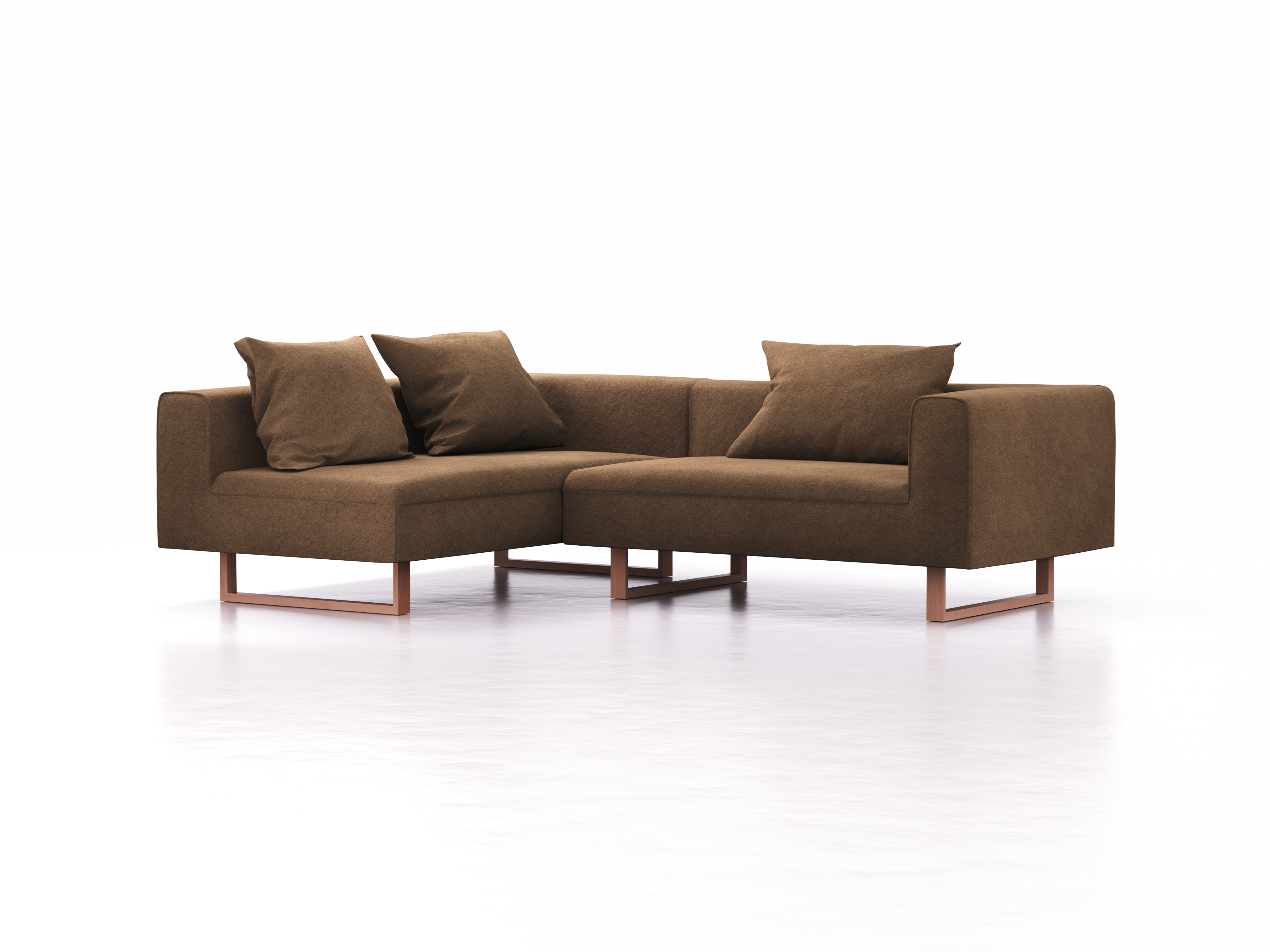Ecksofa Sereno mit Liegeteil, inkl. 3 Kissen (70x55 cm), Liegeteil links, B 246 x T 180 cm, Kufenfuß, mit Bezug Wollstoff Stavang Haselnuss (65), Buche