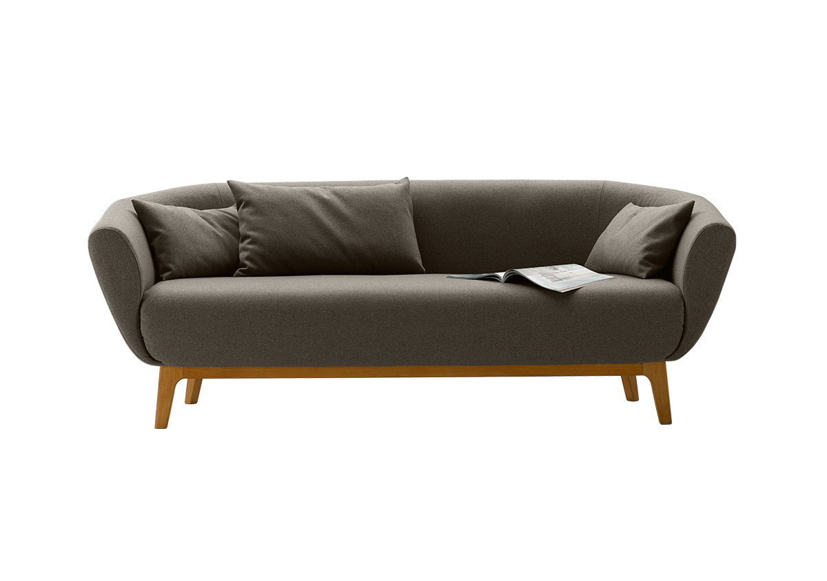 Die Form des Sofas erinnert an das "Streamline-Design" der 1930er-Jahre: sanft gewölbte Formen, lange, durchgehend horizontale Linien, optisch weiche Oberflächen, ohne Ecken, Kanten und Falten.