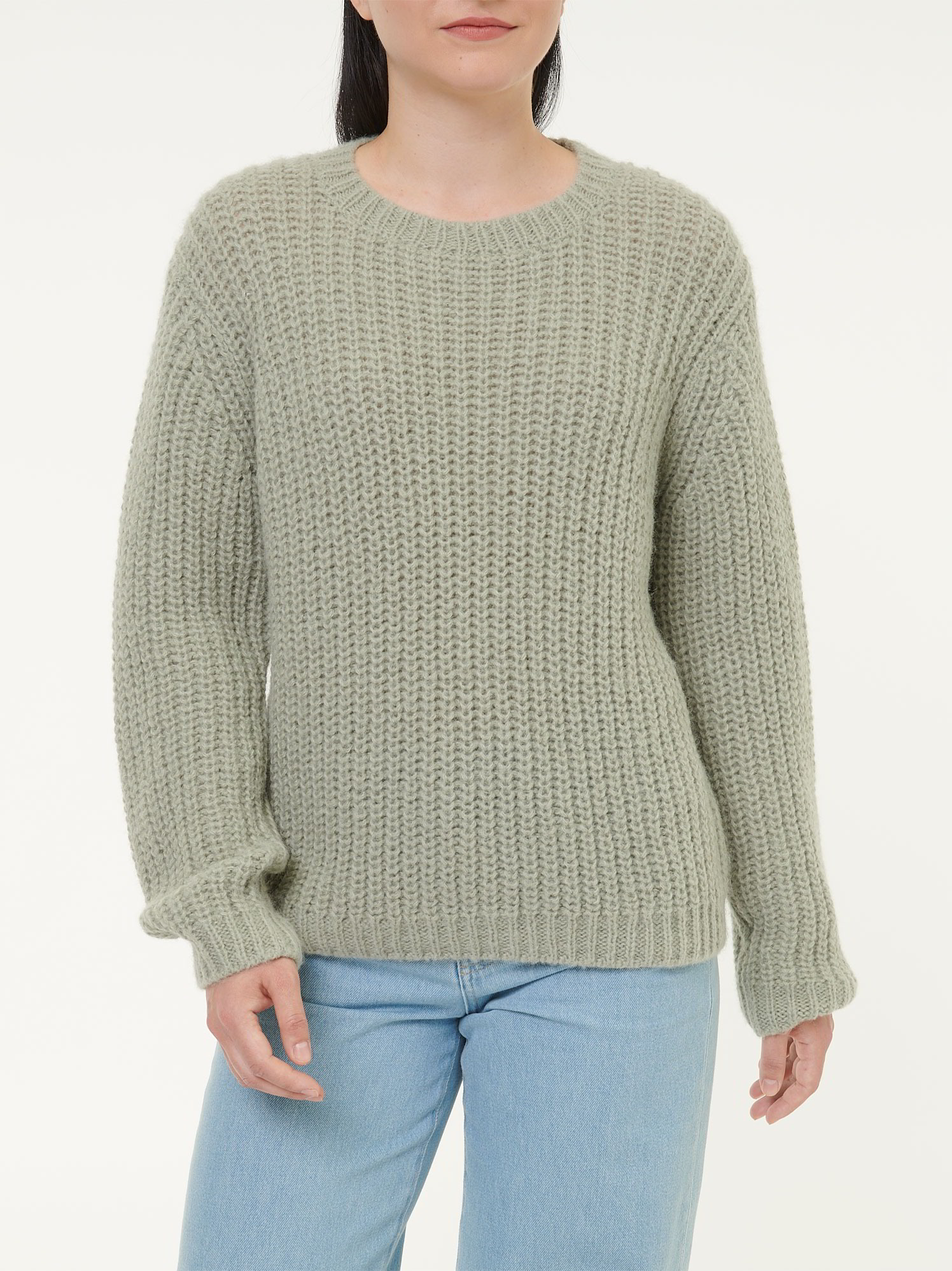 Warmer Strickpullover in hochwertiger Bouclé-Qualität mit weichem Griff – gefertigt aus reiner Alpakawolle.Die natürlichen Fasern verleihen ihm nicht nur eine edle Haptik, sondern auch eine lebendige, tief wirkende Farbigkeit – ganz ohne künstliche Effekte. Die strukturierte Oberfläche verleiht dem Modell Tiefe und Ausdruck .