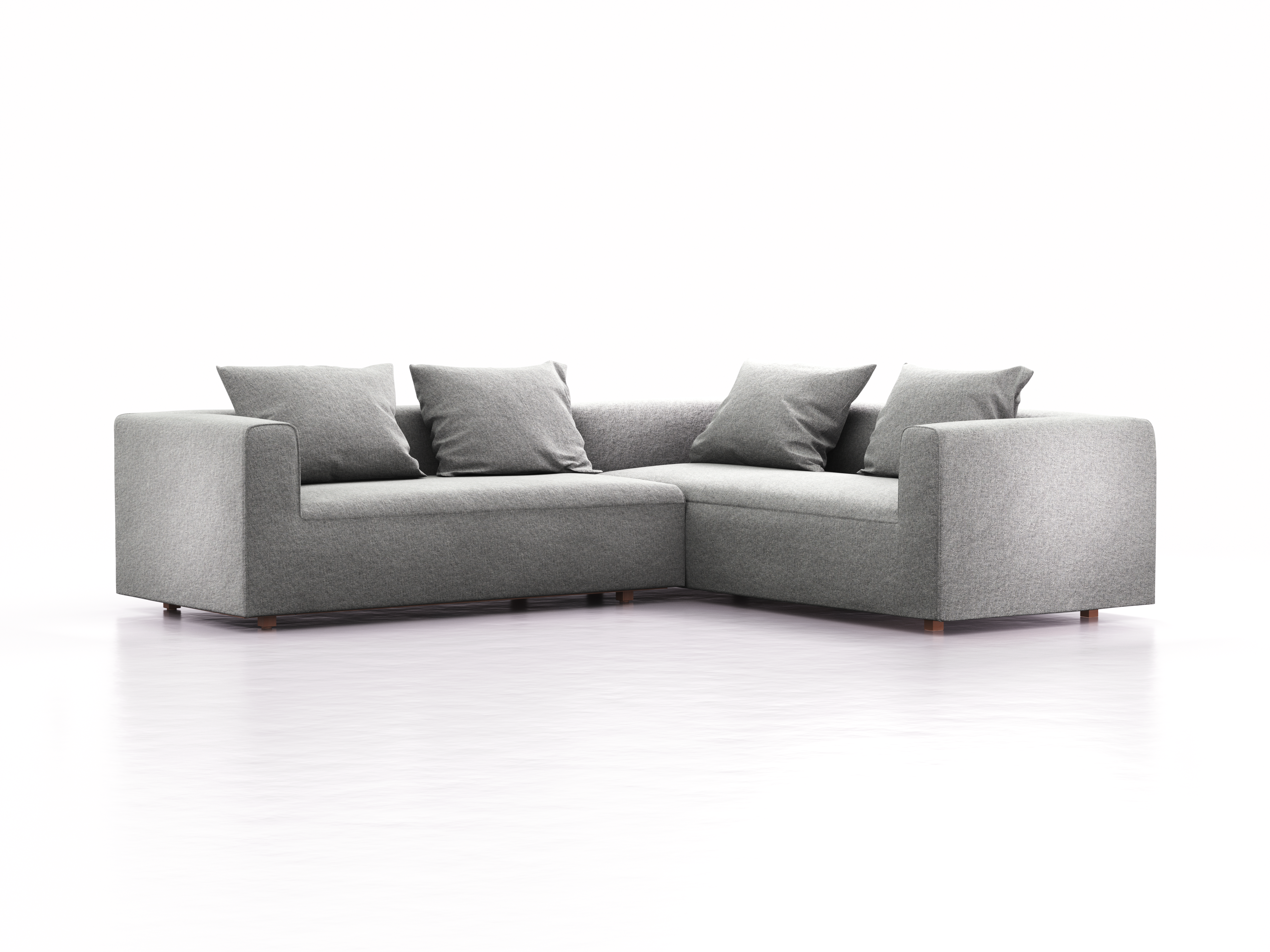 • Ecksofa Sereno inkl. 4 Kissen (70x55 cm), Eckteil rechts, B 276 x T 235 cm, Bodennah, mit Bezug Wollstoff Kaland Kiesel (68), Buche