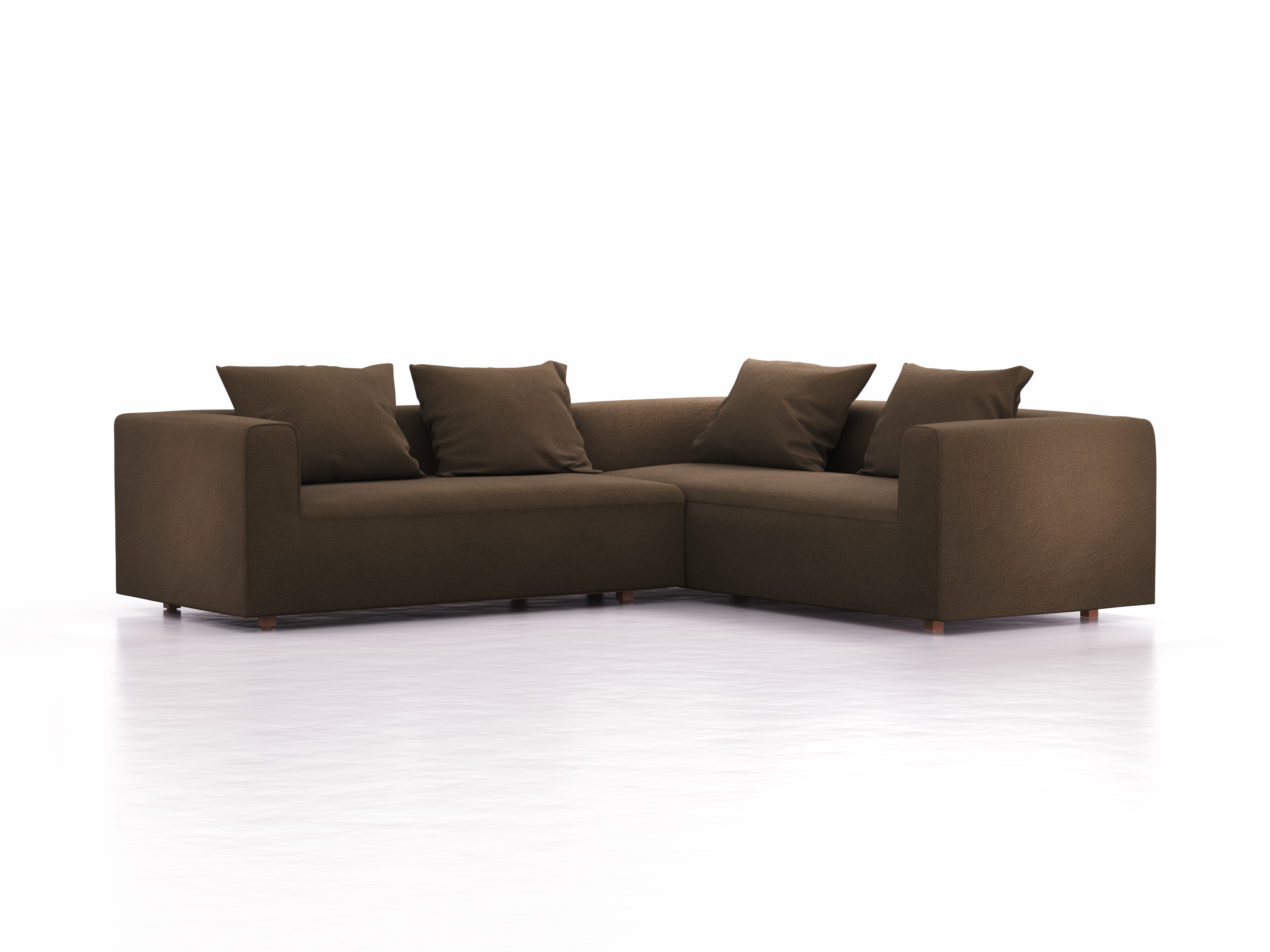 Ecksofa Sereno inkl. 4 Kissen (70x55 cm), Eckteil rechts, B 276 x T 235 cm, Bodennah, mit Bezug Wollstoff Kaland Torf (70), Buche