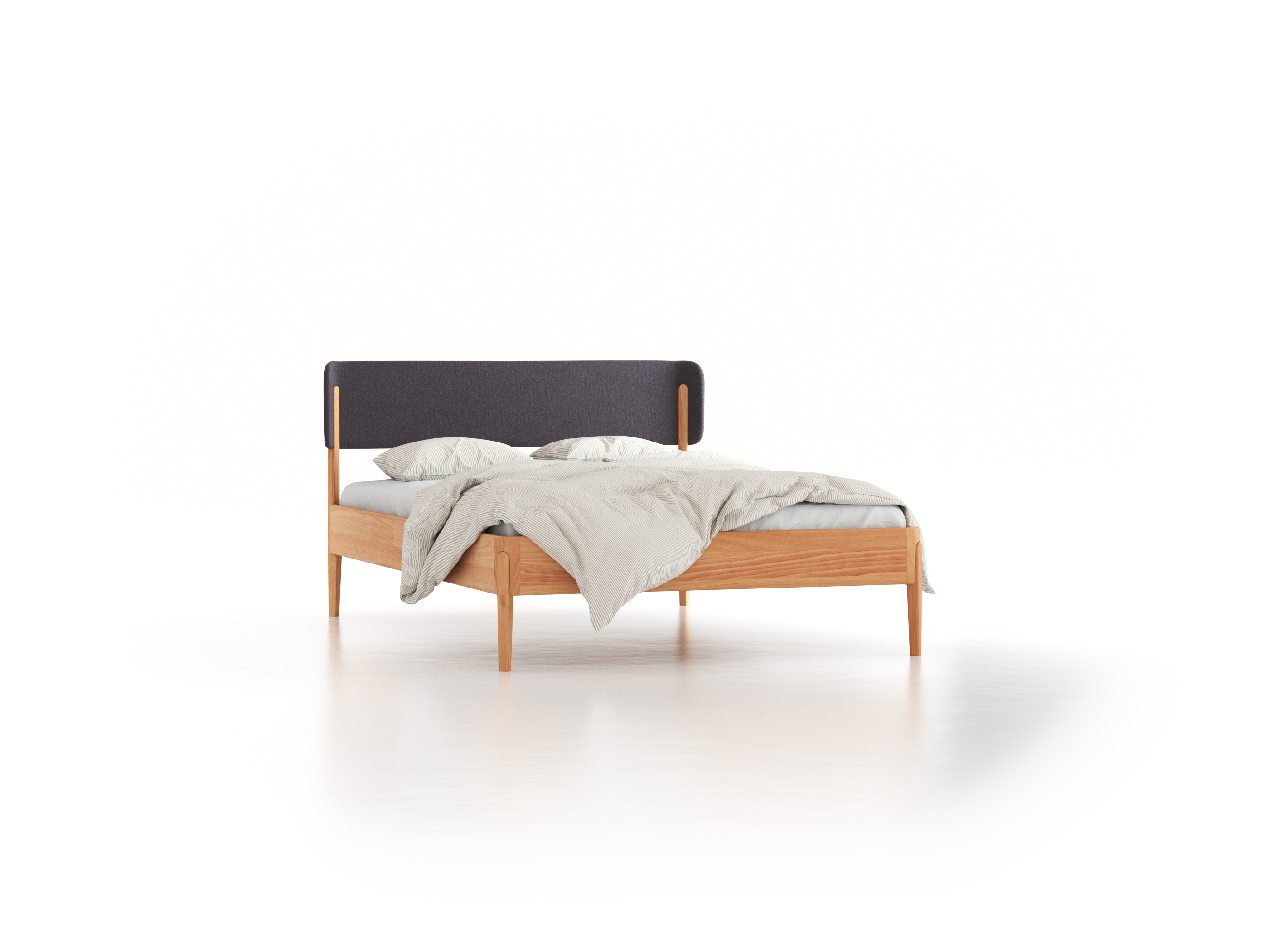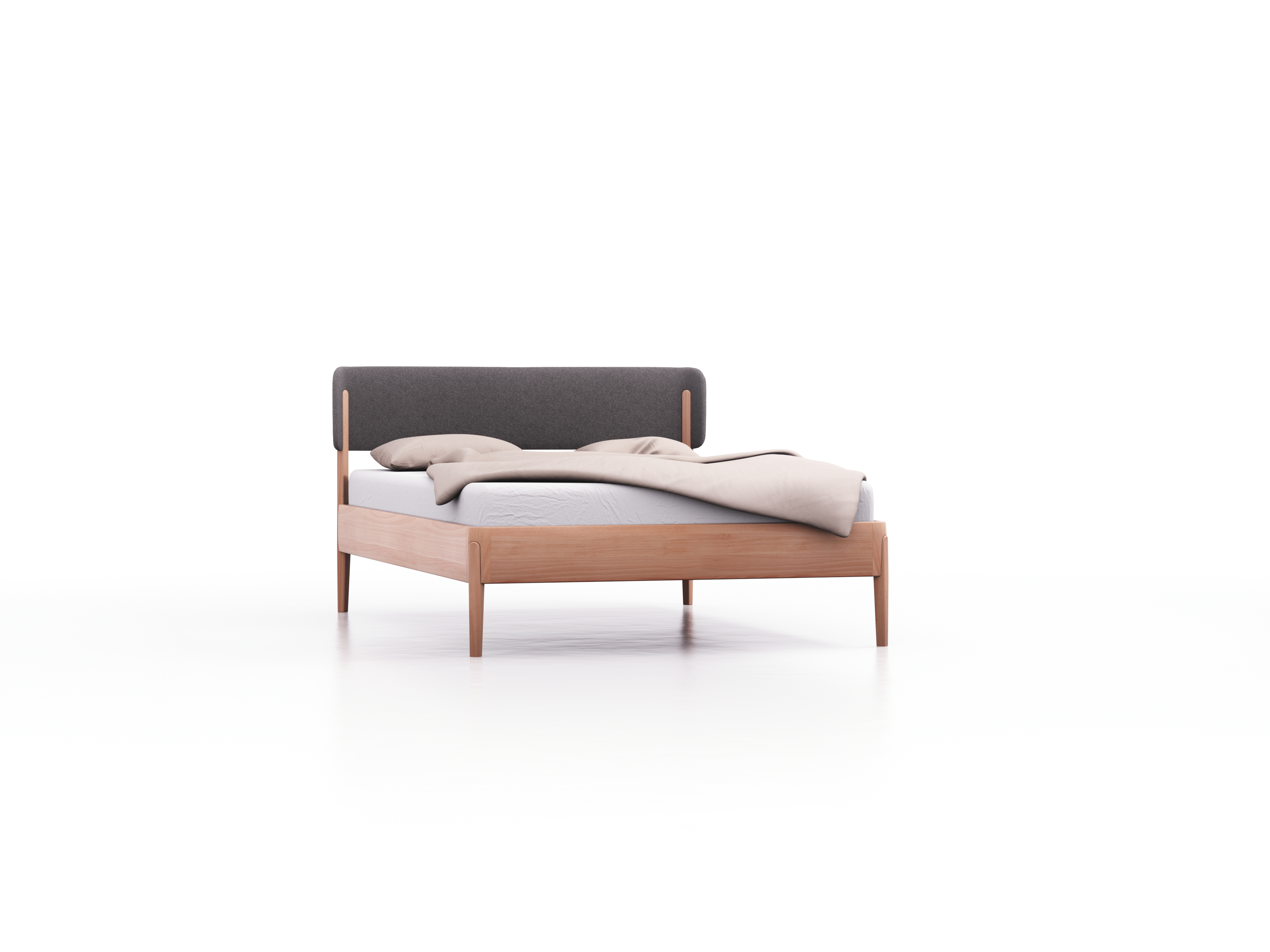 Bett Alwy mit Polsterbetthaupt, 140 x 200 cm, Wollstoff Stavang Stein (61), Buche