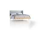 Stilprägend für Tonda ist das an den Seiten nach innen gebogene, bequeme, stabile Polsterbetthaupt: Eine Platte aus verwindungsfestem Pappelschichtholz wird in unserer Werkstatt mit weichem Kokoslatex und Schurwollfilz gepolstert, straff mit einem von 20 Naturstoffen bezogen und mit sorgfältigen Nähten verarbeitet. So bietet das Bett nicht nur eine bequeme Lehne, etwa beim Lesen, sondern auch einen - wenn es frei steht - von allen Seiten schönen Anblick. Tonda kann auch ohne Betthaupt gewählt werden. Es lässt sich später nachrüsten und einfach auf den Corpus stecken.