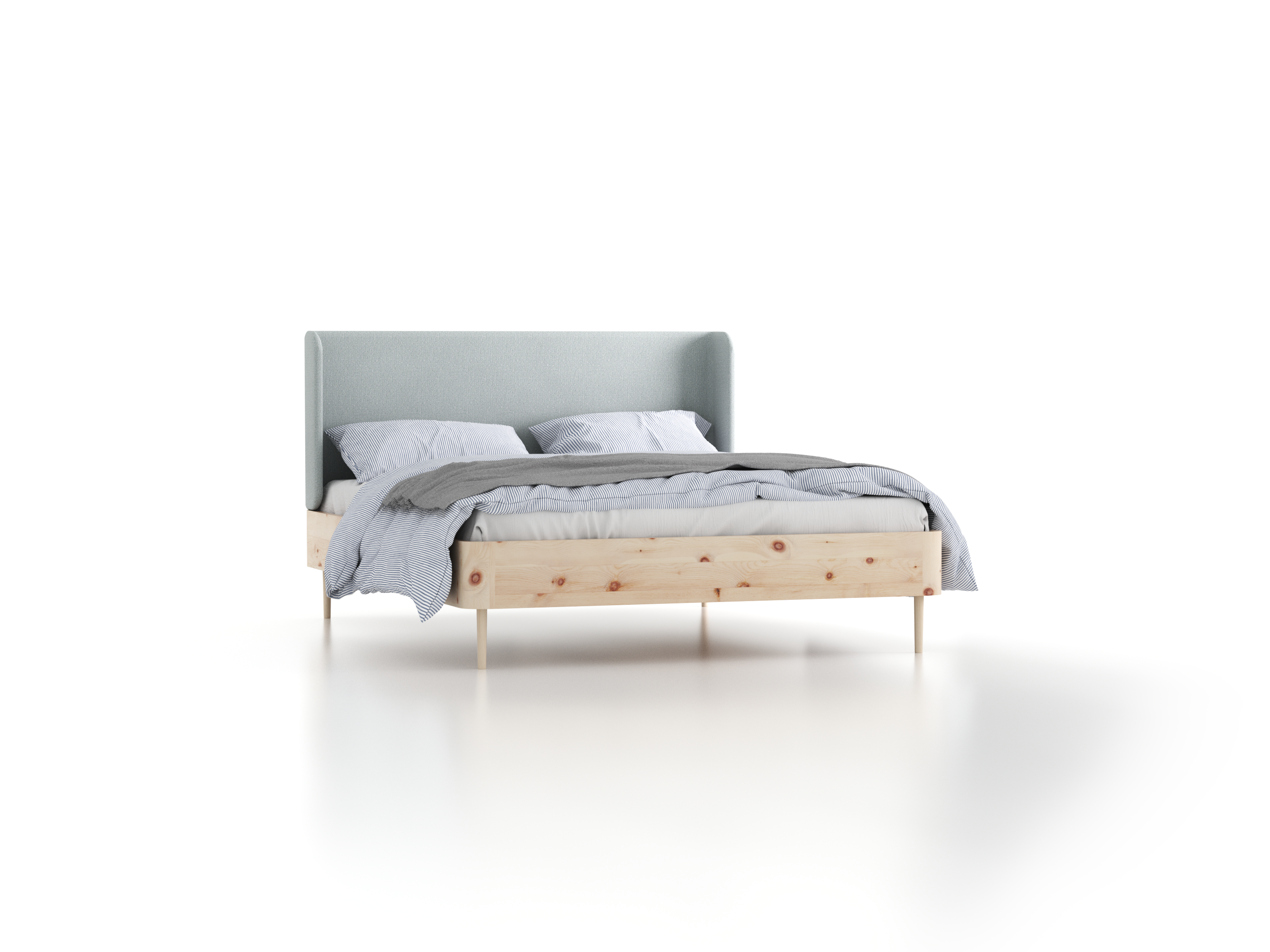 Bett Tonda mit Polsterbetthaupt, 160 x 200 cm, 19,5 cm, Wollstoff Elverum Grüngrau (84), Zirbe
