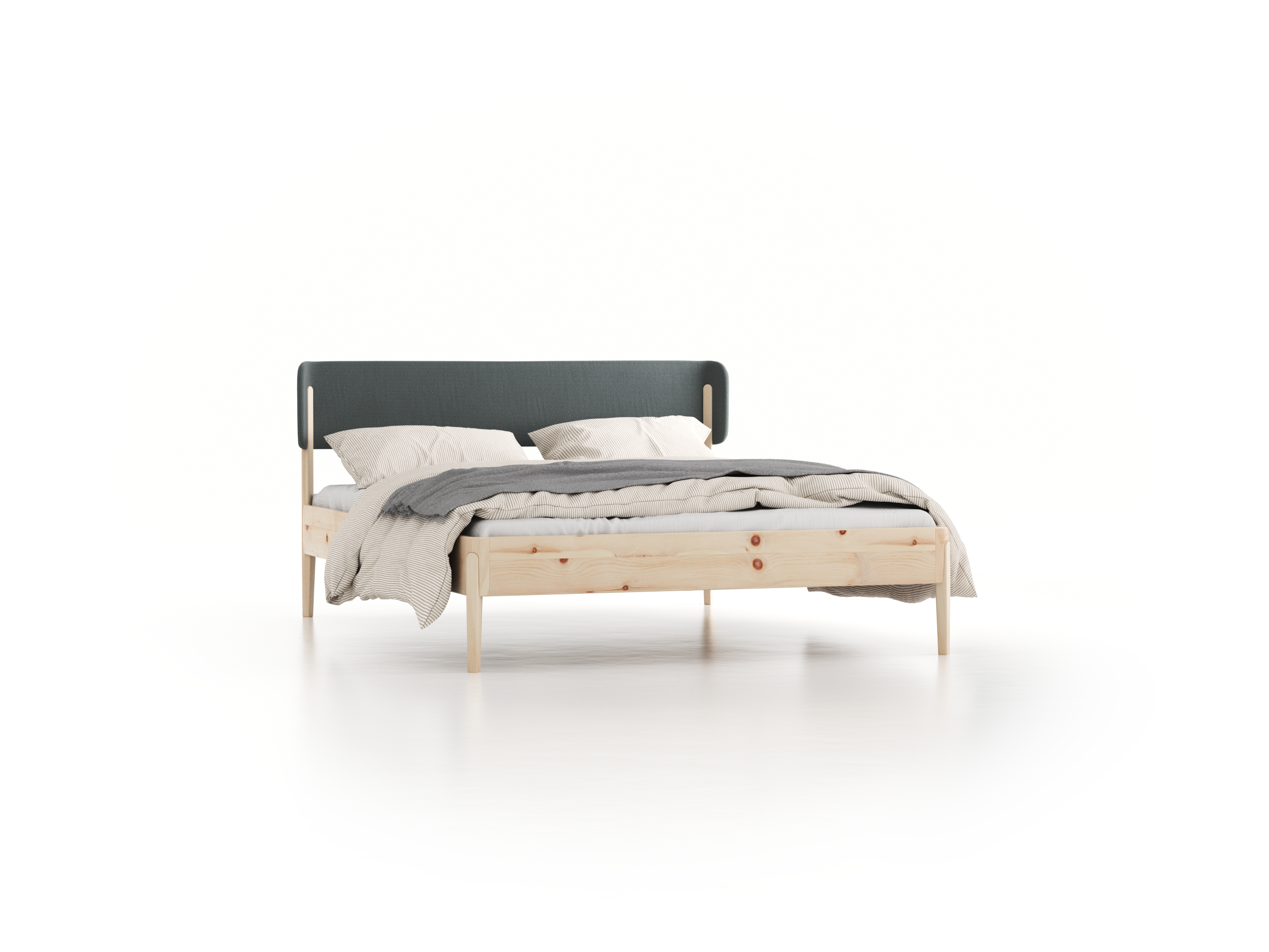 Bett Alwy mit Polsterbetthaupt, 160 x 200 cm, Wollstoff Elverum Grüngrau (84), Zirbe