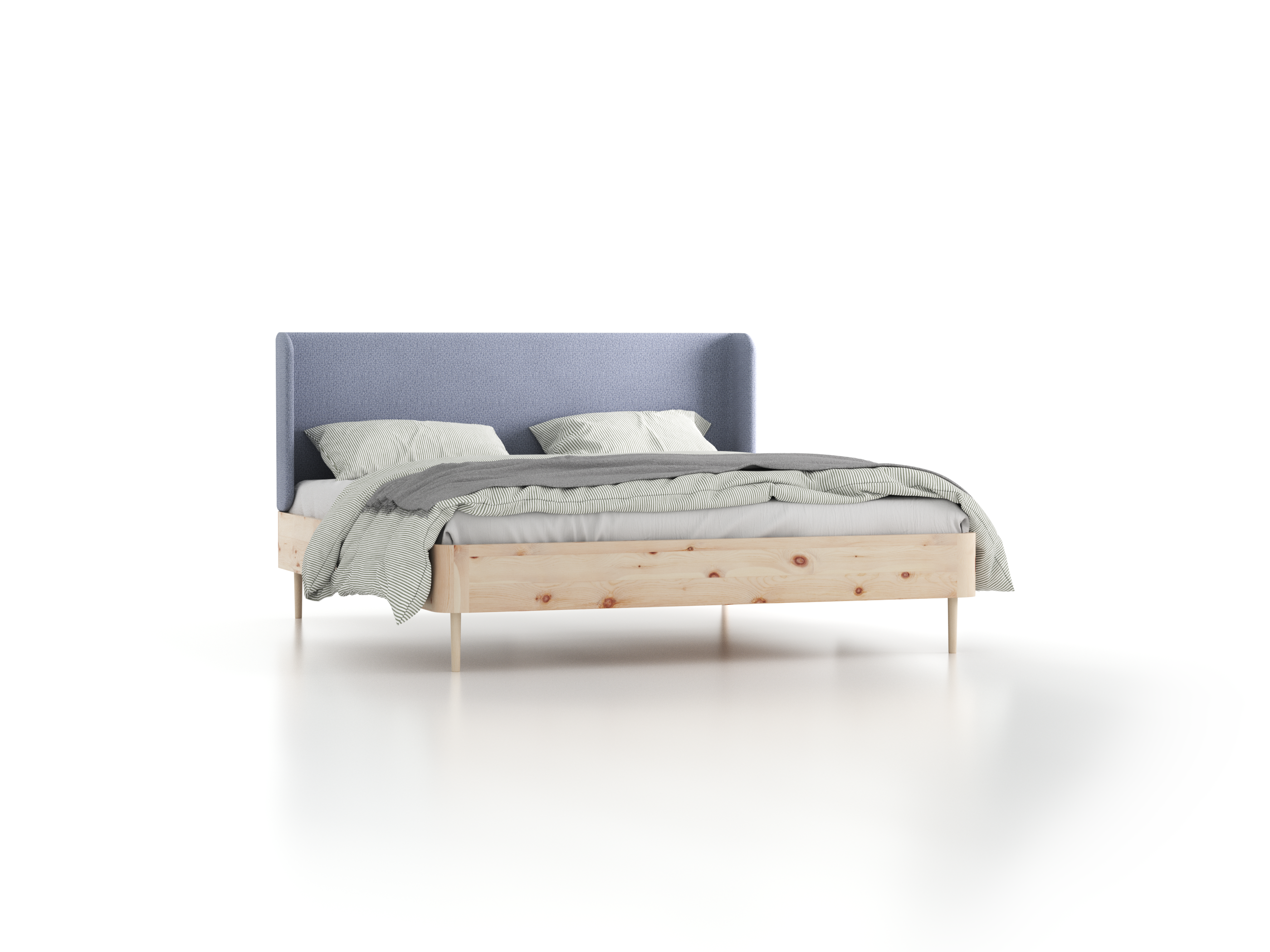 Bett Tonda mit Polsterbetthaupt, 180 x 210 cm, 19,5 cm, Wollstoff Elverum Ozean (75), Zirbe