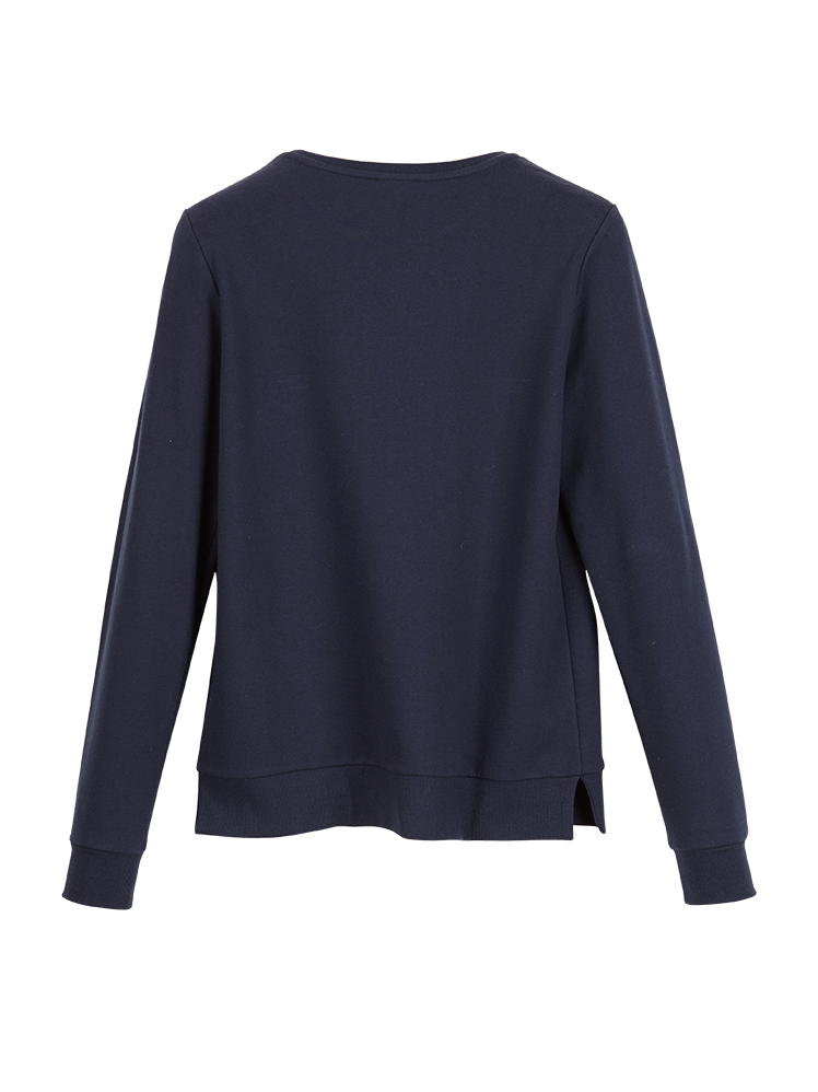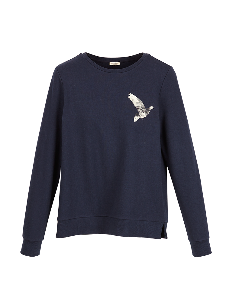 Wohlfühlen auf hohem Niveau: unkompliziertes, lässig sitzendes Sweatshirt aus hochwertiger, 3-fädiger Bio-Baumwoll-Qualität. Gerade Form mit kleiner Blende aus Ribbing am runden Halsausschntt, Kontrast-Druck auf dem Vorderteil, langen Ärmeln und kleinen Seitenschlitzen. Die formtreuen Bündchen der Ärmel und des Saumes sind etwas breiter gehalten. In Größe S (36/38) ca. 64 cm lang.Schnitt: GeradeVerarbeitung: 100 % Baumwolle. Baumwolle kbA aus der Türkei. Fair gefertigt in der Türkei nach dem GOTS. -