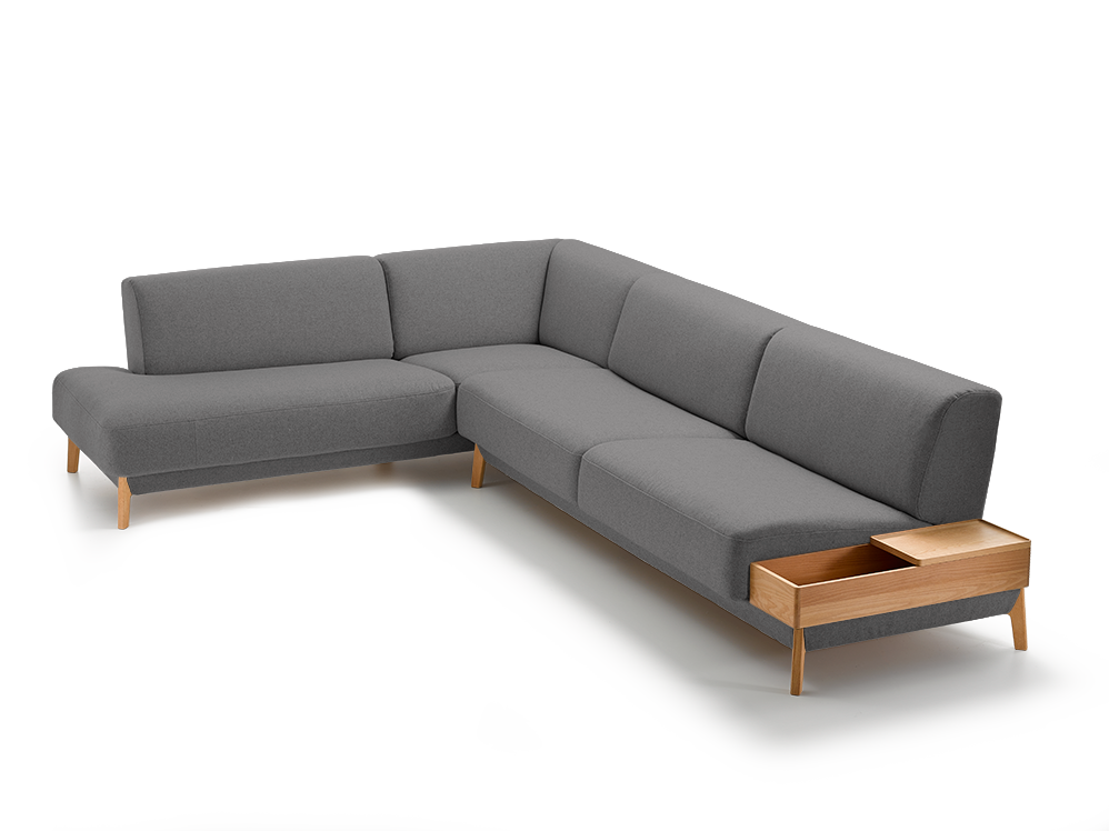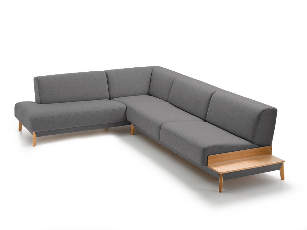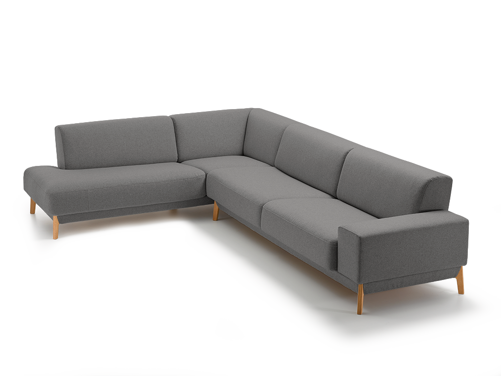 Ecksofa Alani, 224,5x320x82 cm, Sitzhöhe 44 cm, Buche, mit Bezug Wollstoff Tartini Granit