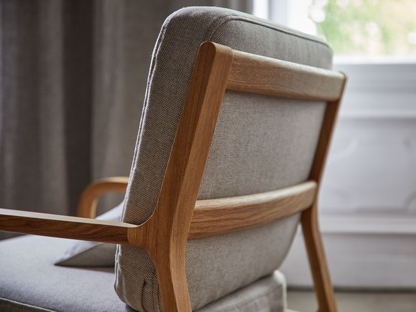 Aus Vollholz tischlermäßig gefertigt und handwerklich gepolstert und tapeziert. Für die rein funktionalen Teile des Unterbaus wird außerdem Pappel-, Birken- oder Fichtenholz verwendet, um das Gewicht der Produkte nicht unnötig zu erhöhen.-